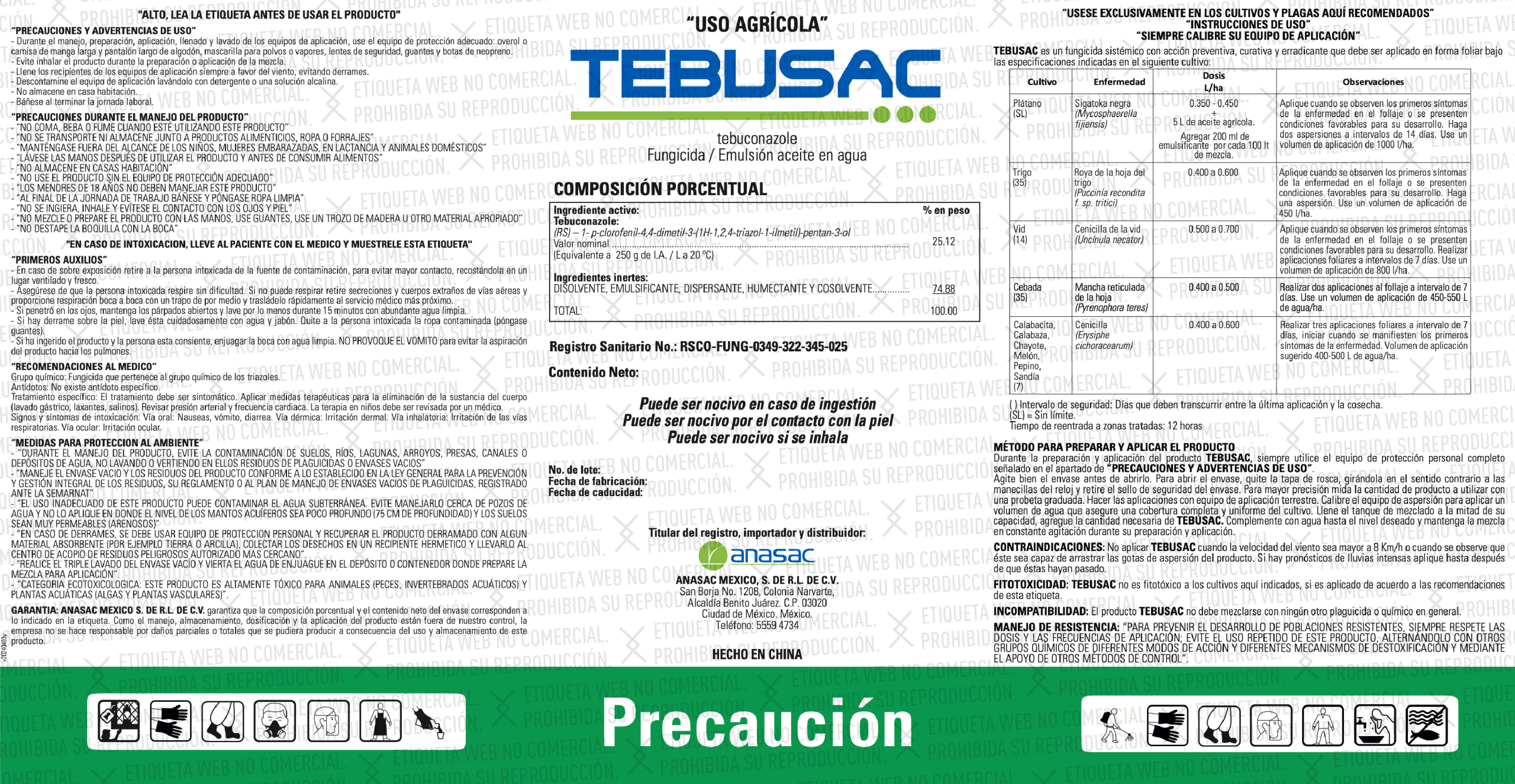 Fungicida agrícola a base de tebuconazole, para la prevención y control de enfermedades como: sigatoka negra, roya de la hoja de trigo, cenicilla de la vid y mancha reticulada de la hoja.