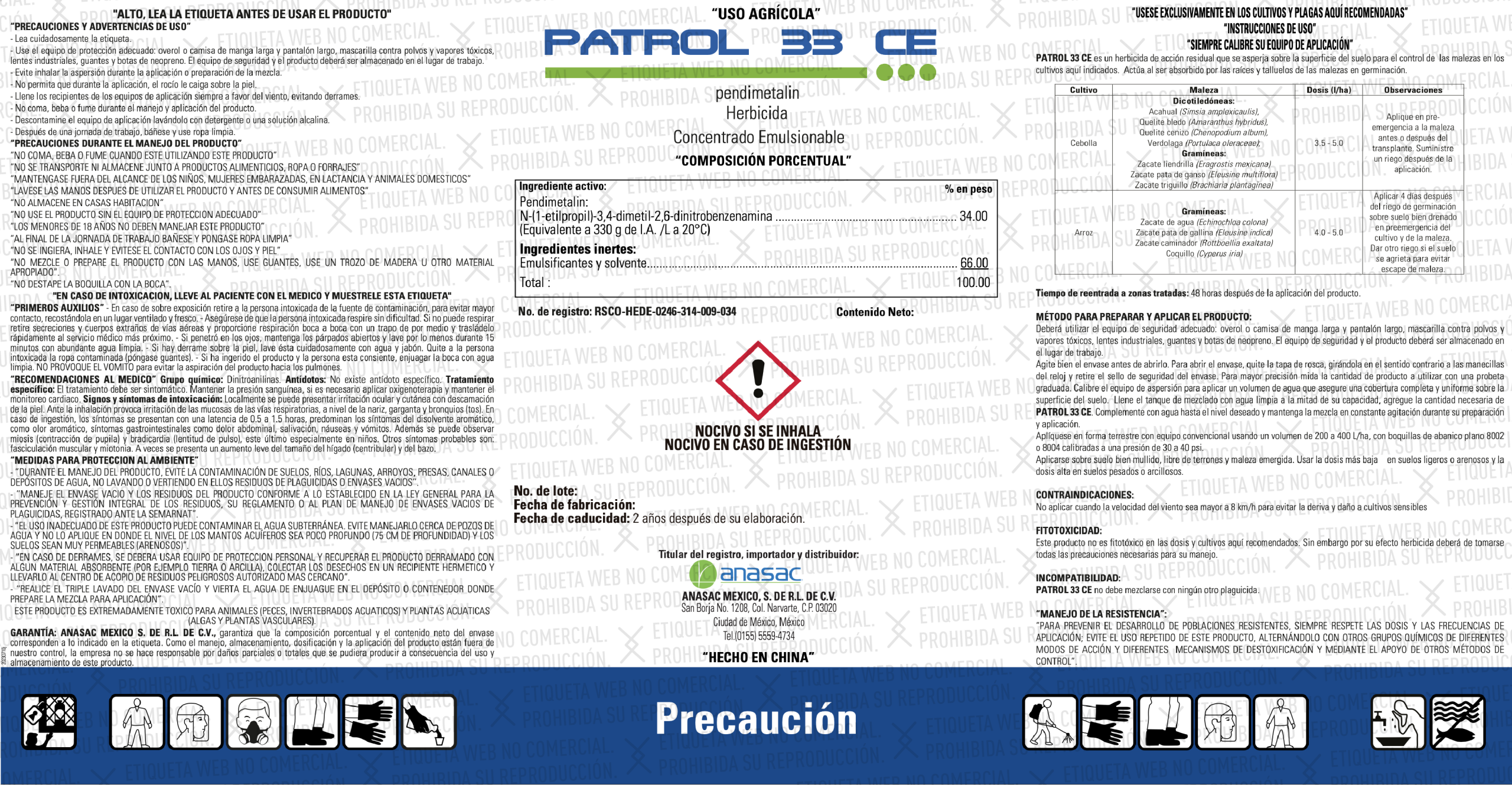 Herbicida de acción residual que se asperja sobre la superficie del suelo para el control de las malezas en los cultivos de cebolla y arroz. Actúa al ser absorbido por las raíces y talluelos de las malezas en germinación.