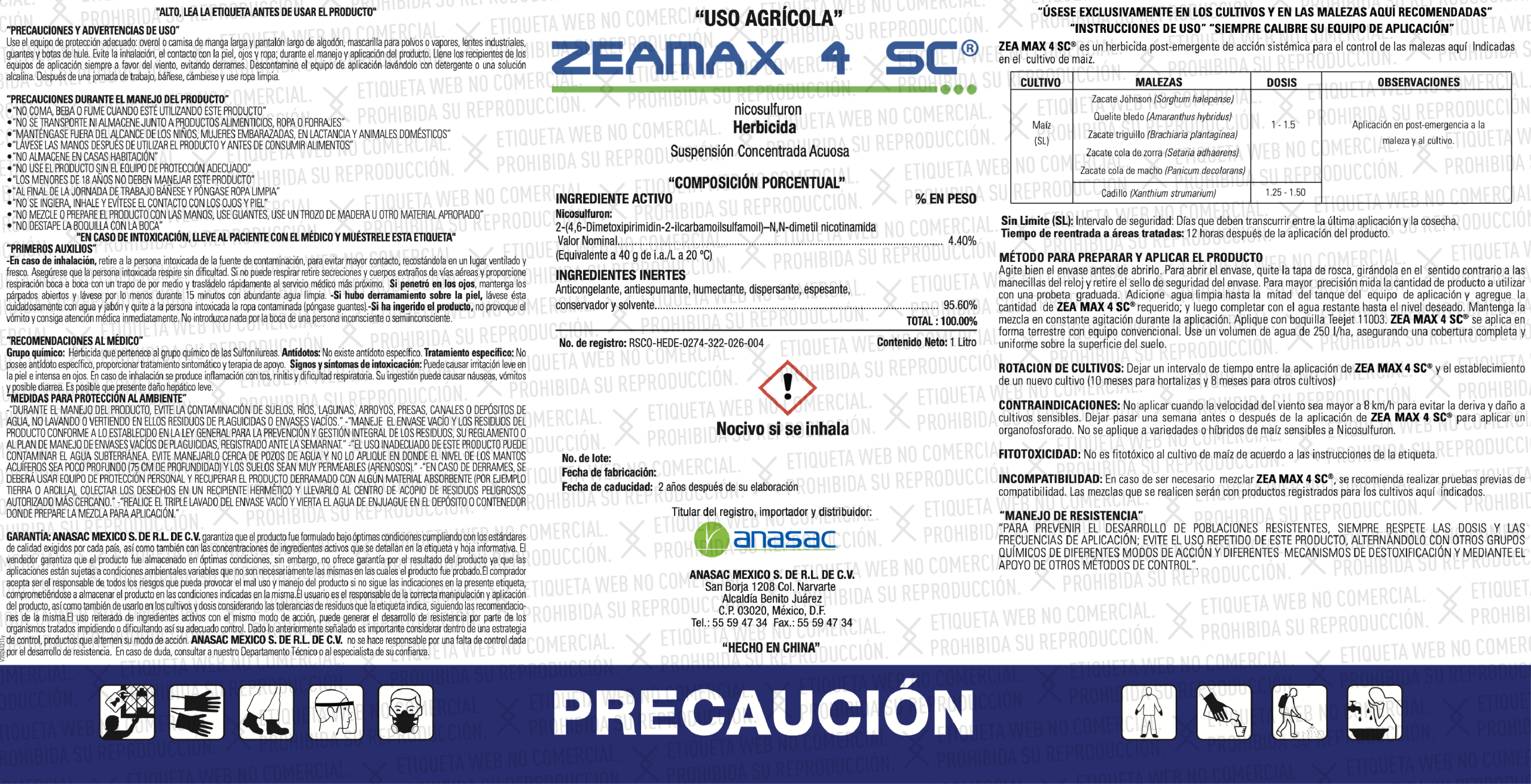 Herbicida post-emergente de acción sistémica, para control de malezas en el cultivo de maíz como: Zacate jonson, quelite bledo, zacate triguillo, zacate cola de zorra, zacate cola de macho y cadillo.