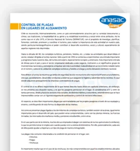 Así como se presentan plagas ligadas a los dormitorios de complejos turísticos, también existen otras áreas, igualmente importantes para el desarrollo del país, que pueden verse comprometidas, como son las plantas mineras, las Fuerzas Armadas, los internados de enseñanza media y pensiones estudiantiles, entre otras.